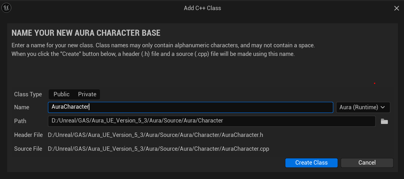 해당 클래스는 캐릭터 설계를 위한 베이스로, 직접 스폰되지 않고 파생 클래스에서 사용되기에 UCLASS()에 Abstract를 지정한다.