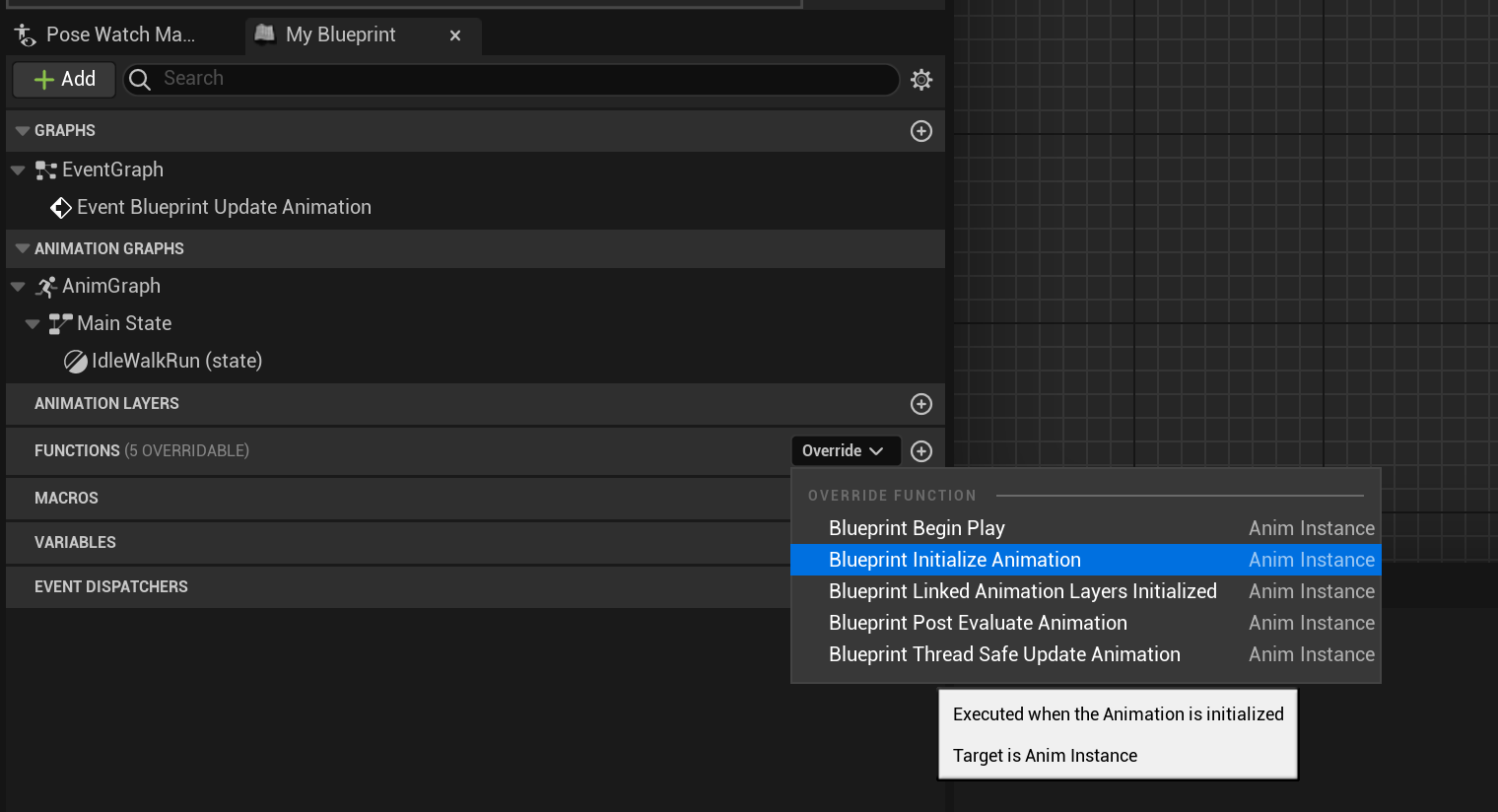 Blueprint Initialize Animation을 통해 현재 Pawn Owner를 캐스팅하여 현재 참조하는 대상에 대한 정보를 저장해줄 것이다.