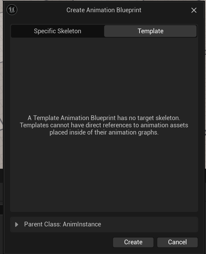 이제 이 상태에서 해당 템플릿을 기반으로 한 애니메이션 블루프린트를 만들어 줄 것이다.