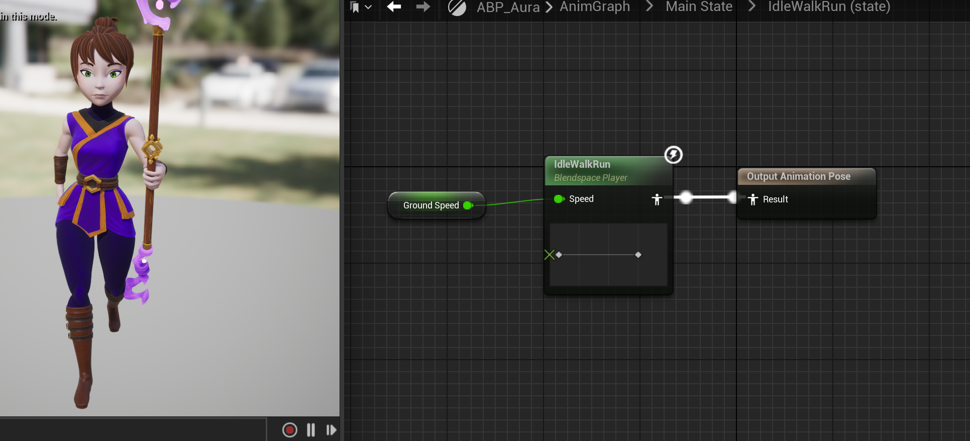 이렇게 만든 애니메이션 블루프린트는 Aura 블루프린트에 할당해주면 된다.