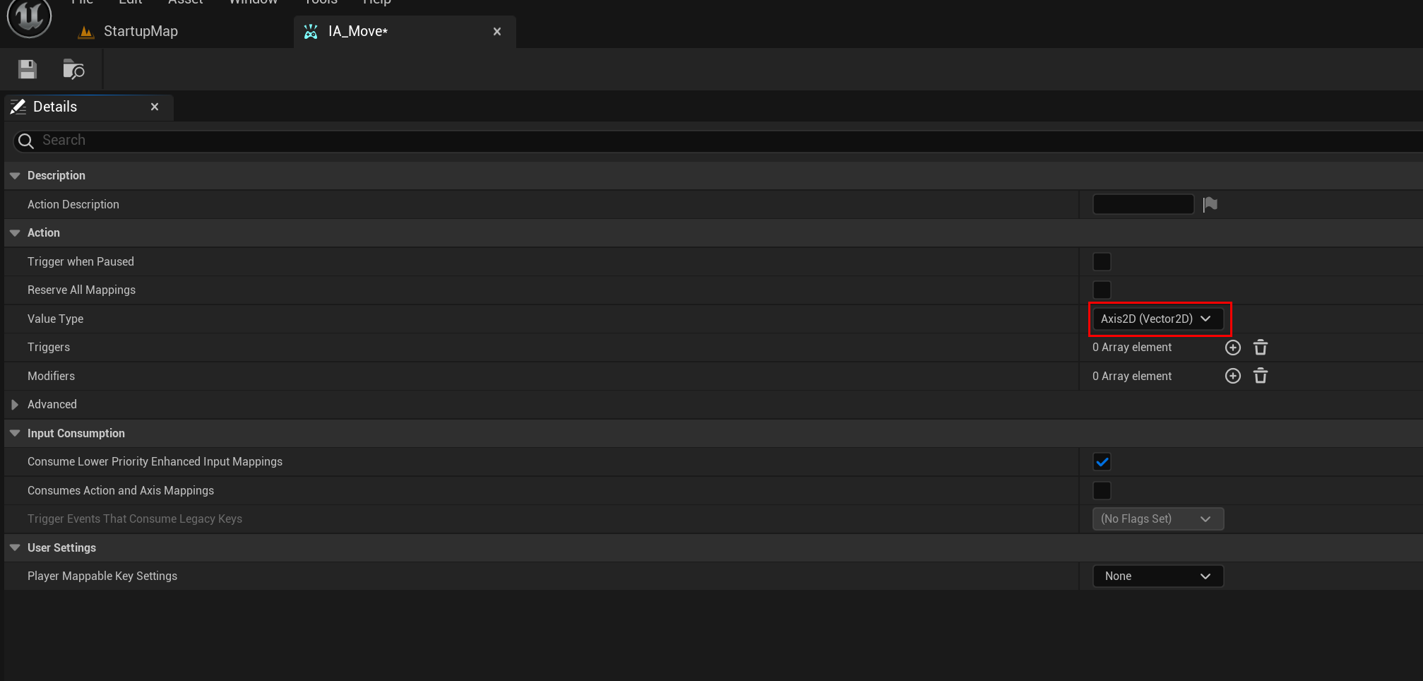 여기서 Value Type에 대해서 Axis2D로 값을 바꿔주자.