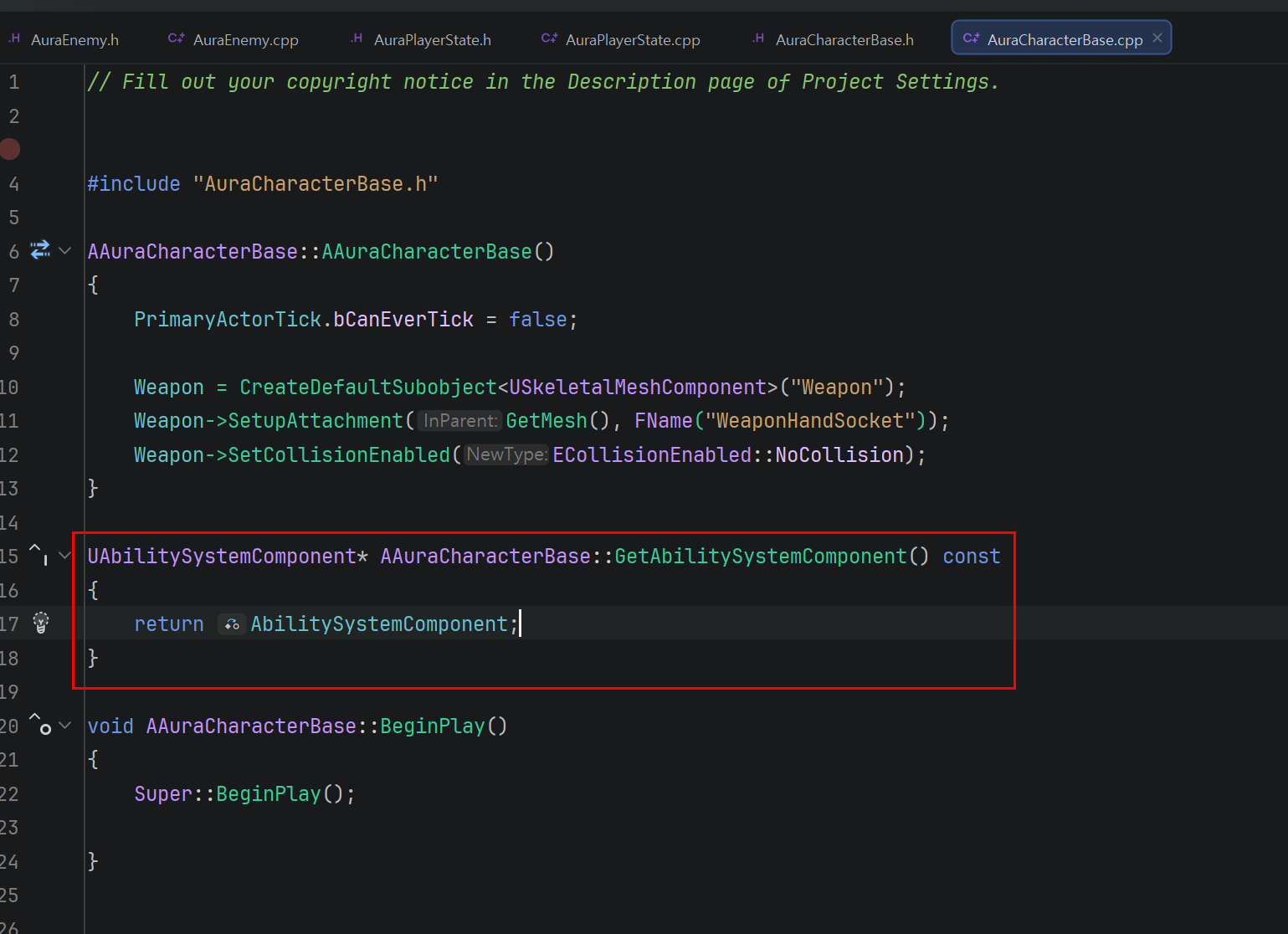 그리고 이를 AuraCharacterBase에서 상속시켜줄 것이다.