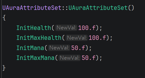 하지막 아직 Gameplay Effect를 다루지 않았기 때문에, 현재 단계에서는 일반 Setter로 코드에서 값을 설정해줄 것이다.