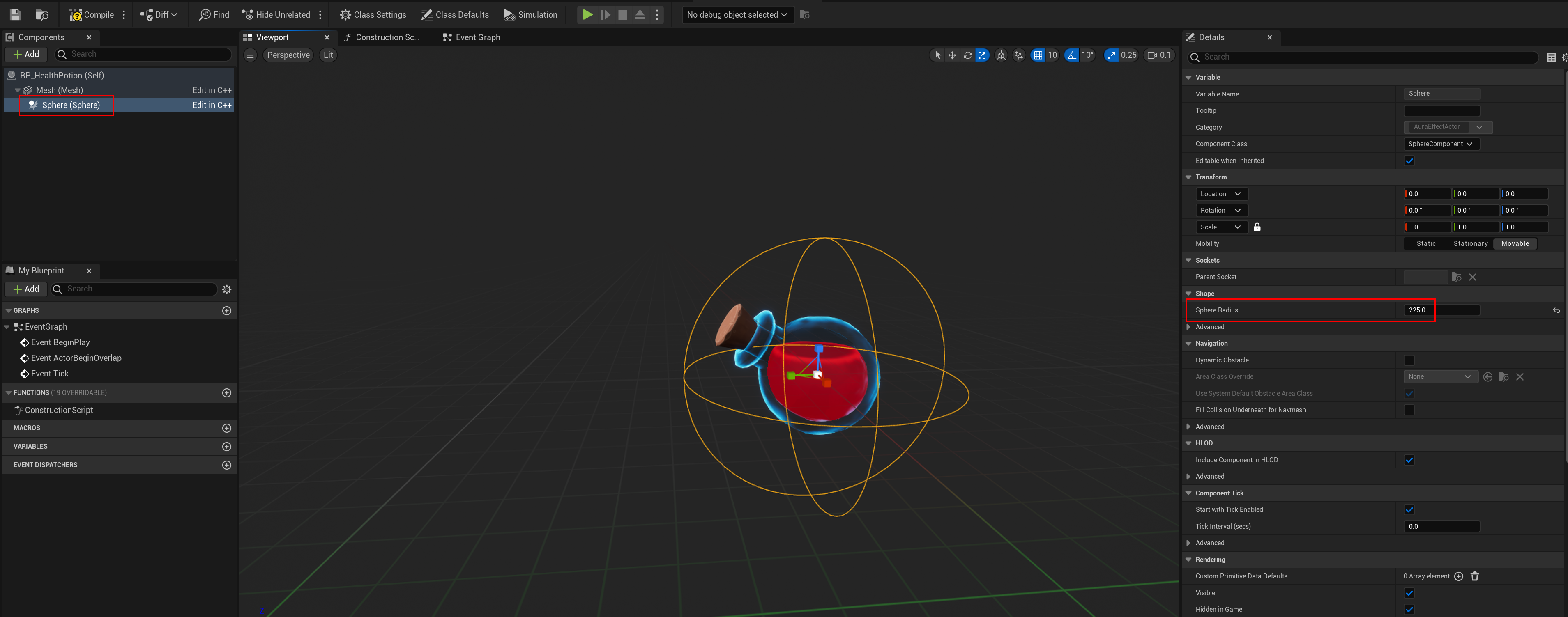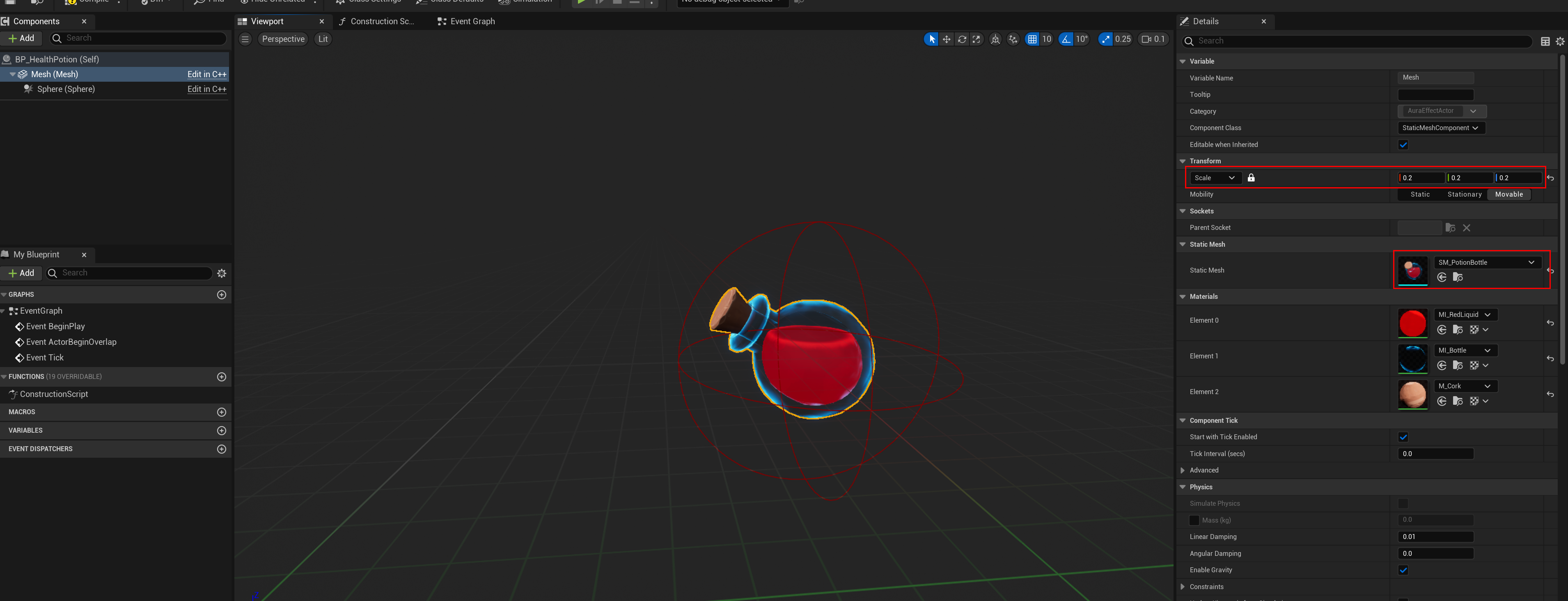 이제 블루 프린트 클래스를 만들고, 포션 Mesh를 할당해줄 것이다.