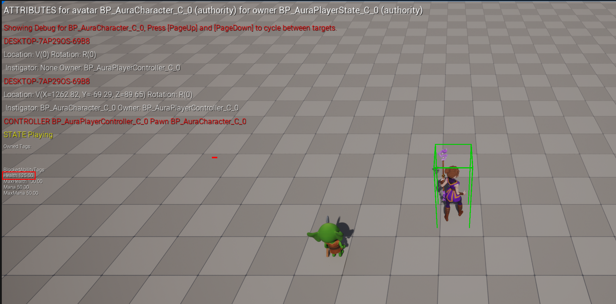 이제 포션을 맵에 비치한 후 ShowDebug AbilitySystem을 통해 정보를 화면에 띄운 후 포션 습득 전 후의 체력을 확인할 수 있다.