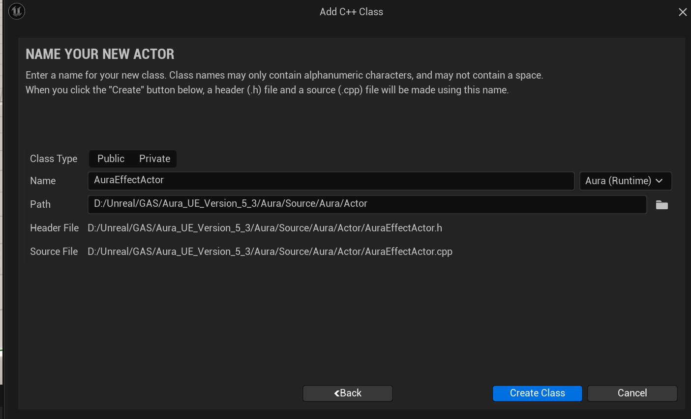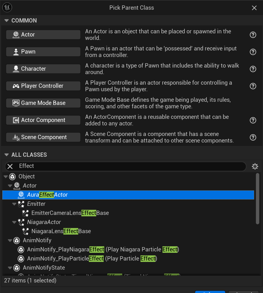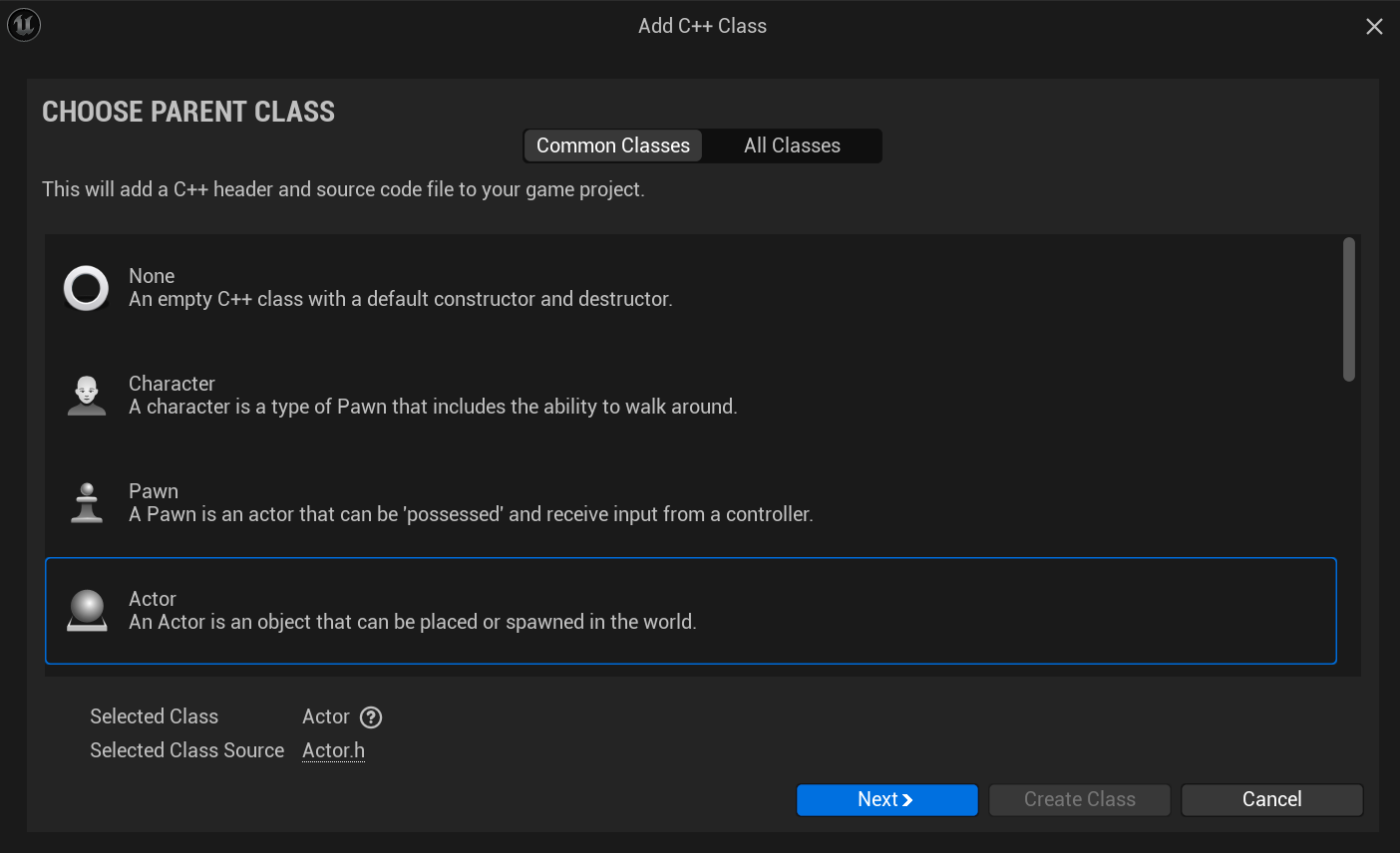 먼저 범용 액터 역할을 할 새 C++ Actor 클래스를 생성한다.