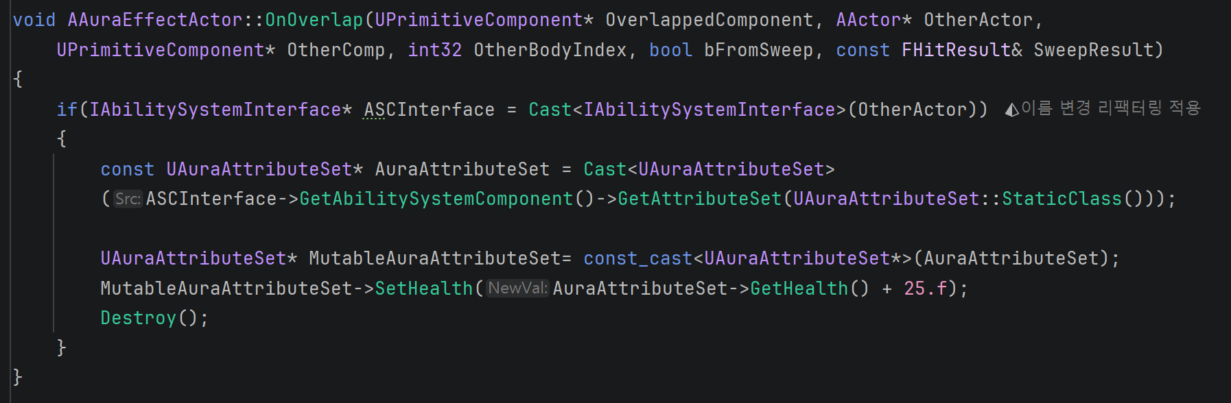Attribute 변경은 원래 Gameplay Effect를 사용하는 것이 정석이나, 아직 배우지 않았기 때문에 임시로 Attribute를 직접 수정하는 방식을 사용한다.
