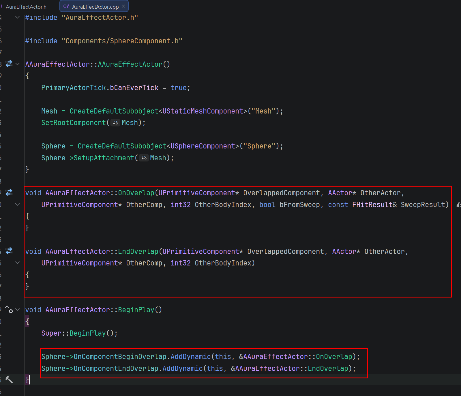 OnEndOverlap의 경우 겹친 상태가 끝났기 때문에 충돌 관련 정보가 필요 없어서 bFromSweep과 SweepResult는 필요없다.