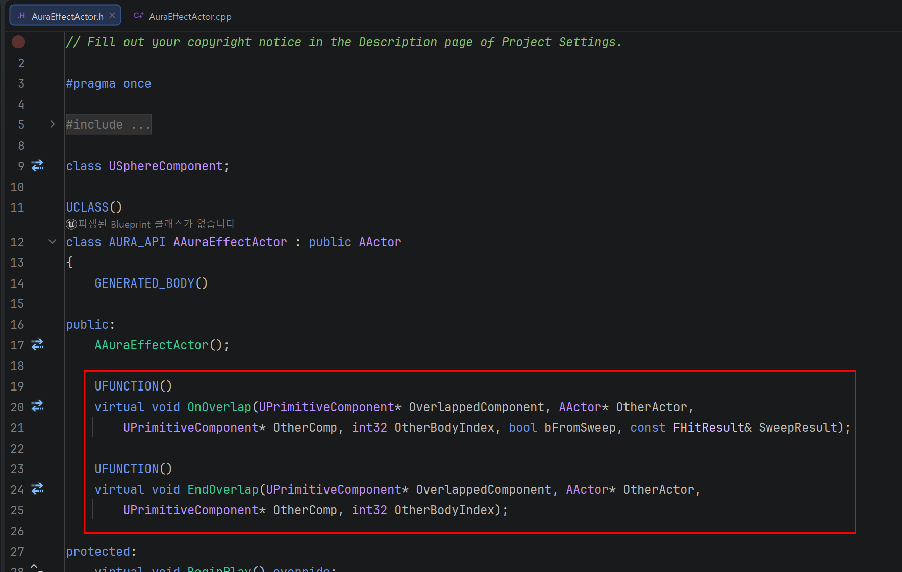 추가적으로 해당 액터에서는 Tick를 다룰 필요가 없기에 해당 내용을 삭제해주었다.