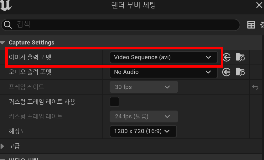 먼저 이미지 출력 포맷을 avi로 바꿔서 영상 포맷으로 만들어준다.