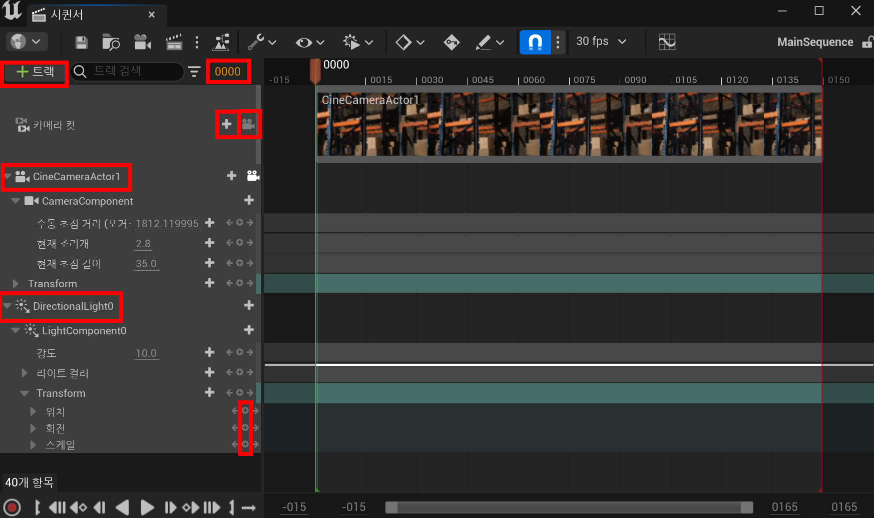카메라 액터 뿐만이 아니라 DirectionalLight도 시퀸서에 추가할 수 있다.