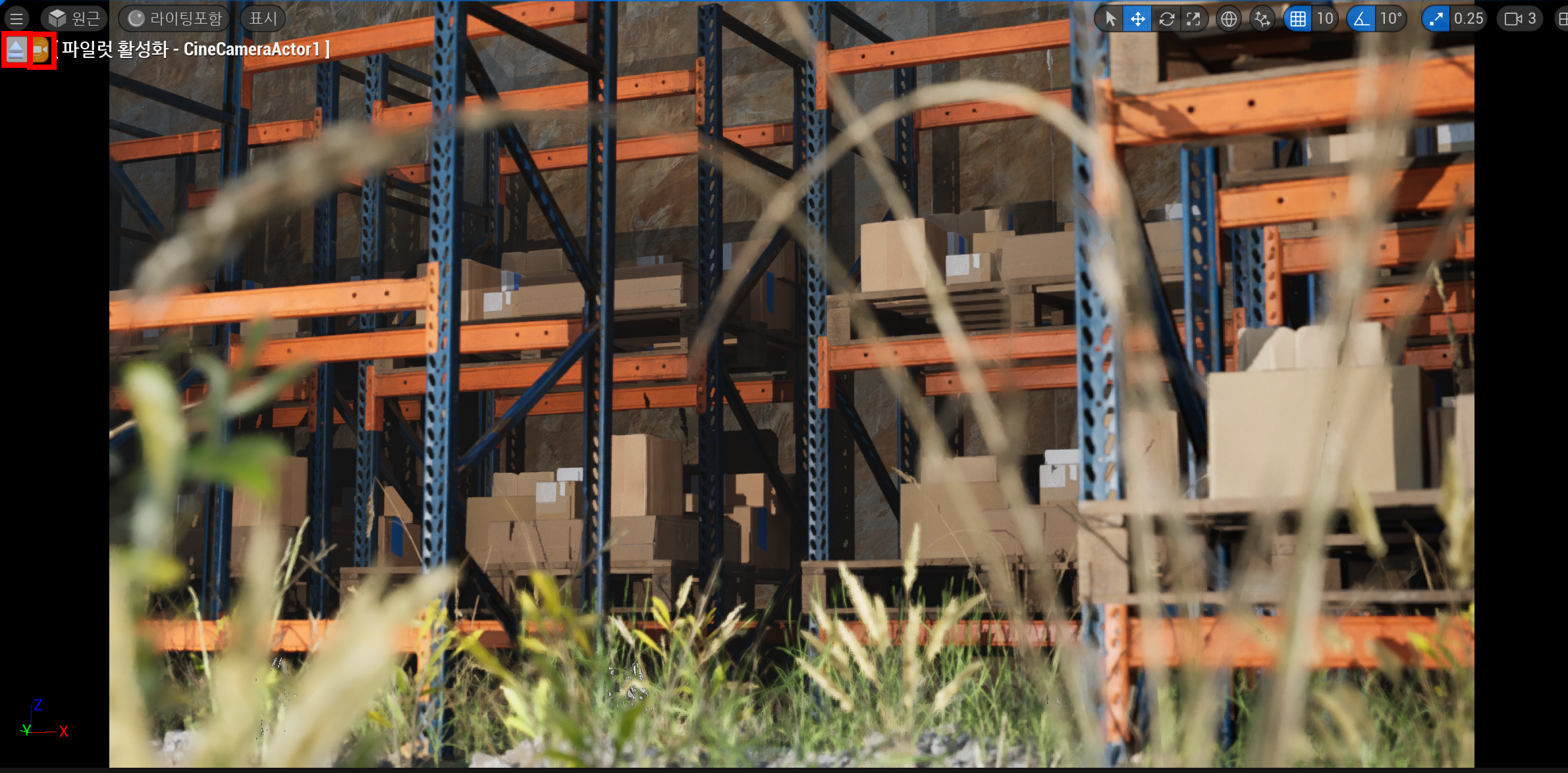 만약 해당 카메라 액터에 초점을 다시 맞추고 비율을 조정하는 등 몇가지 수정을 해놓고 저 아이콘이 활성화되어있지 않다면 기껏 적용시켜놓은 기능들이 활성화되지 않는다.
