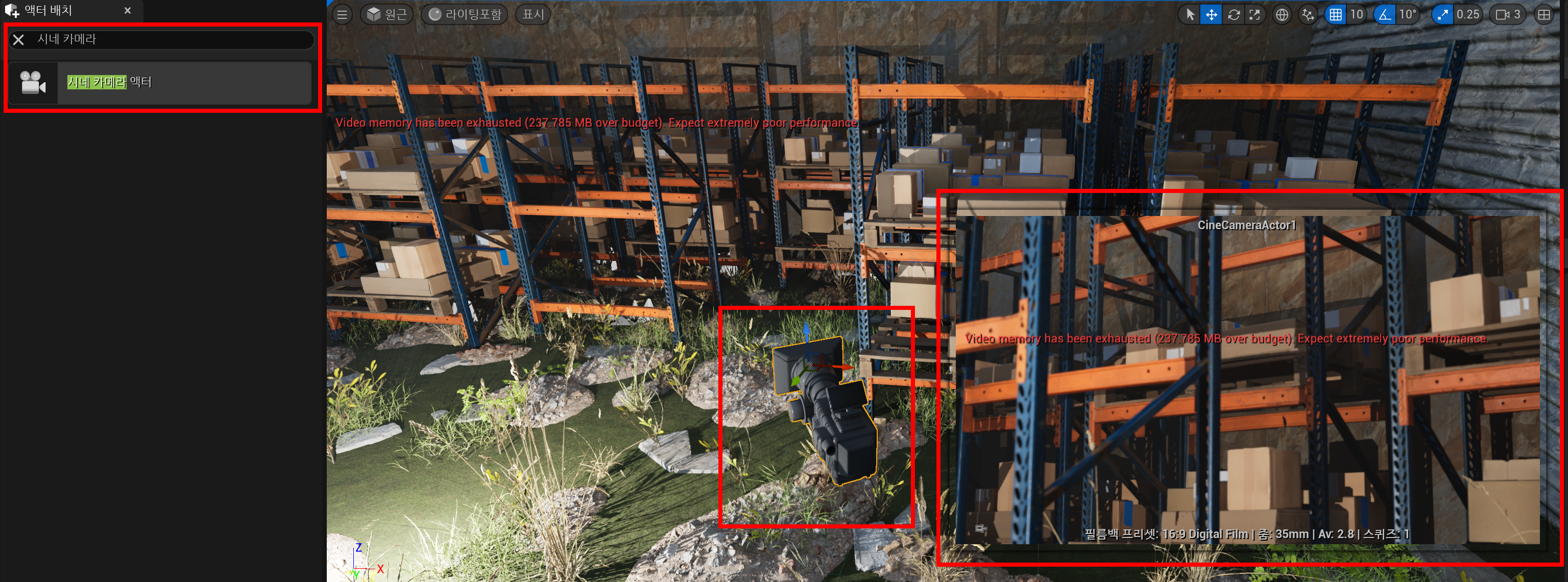 위의 사진이 카메라 액터를 막 배치한 상태의 사진이다.