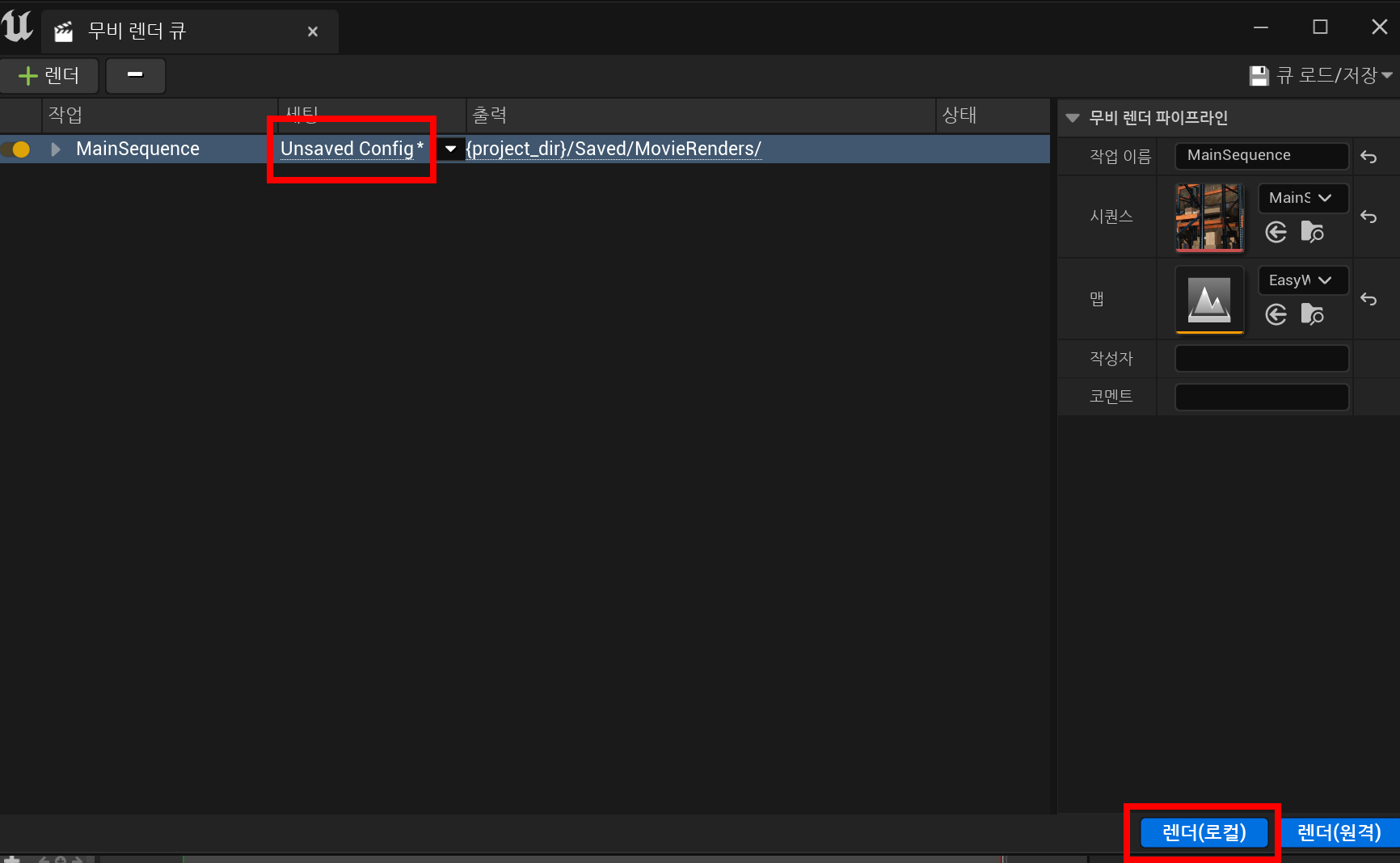 먼저 더 최신 기능인 무비 렌더 큐를 보겠다.