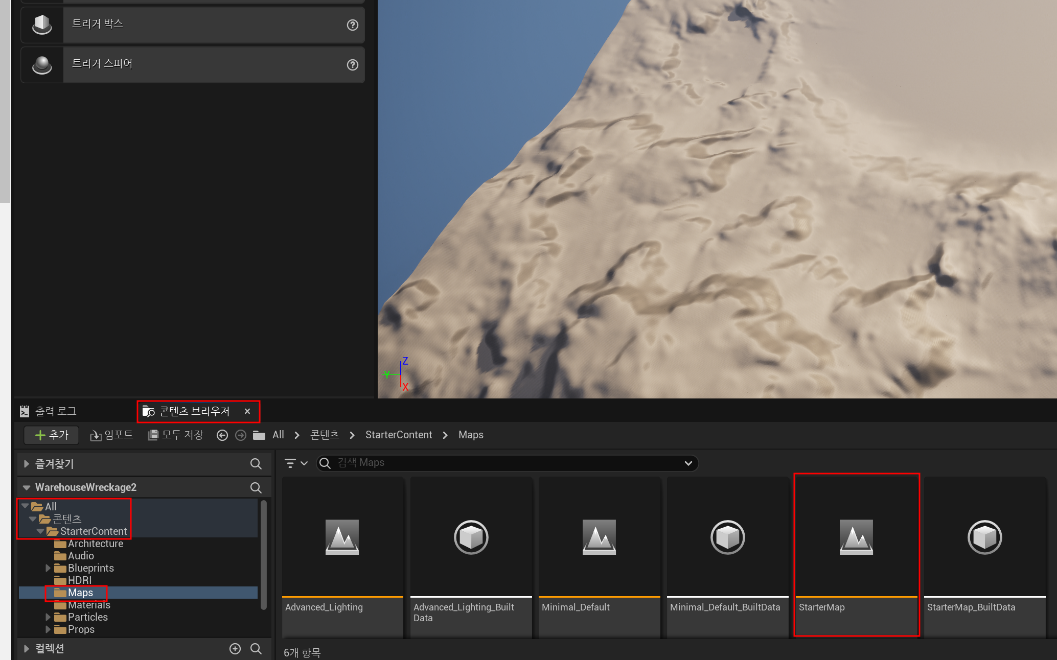 기본적인 내용들은 콘텐츠 브라우저 좌측에 콘텐츠에 담겨있다.