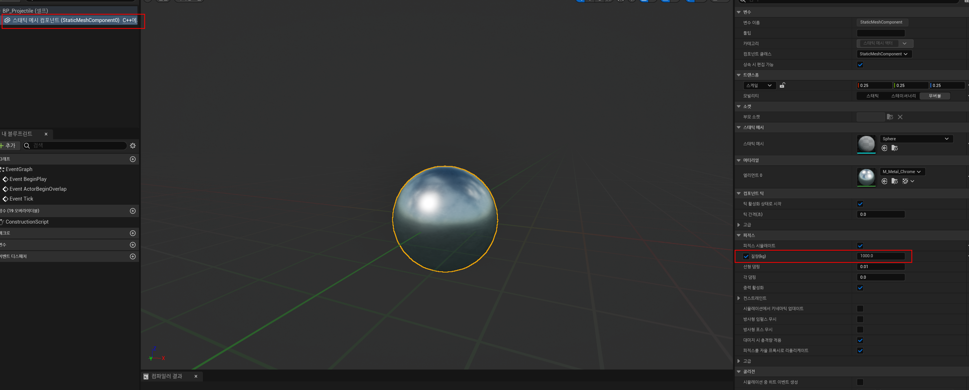 또한 해당 강의에서 구체의 질량이 가볍다고 생각하여 아래와 같이 질량을 더욱 무겁게 해주었다.