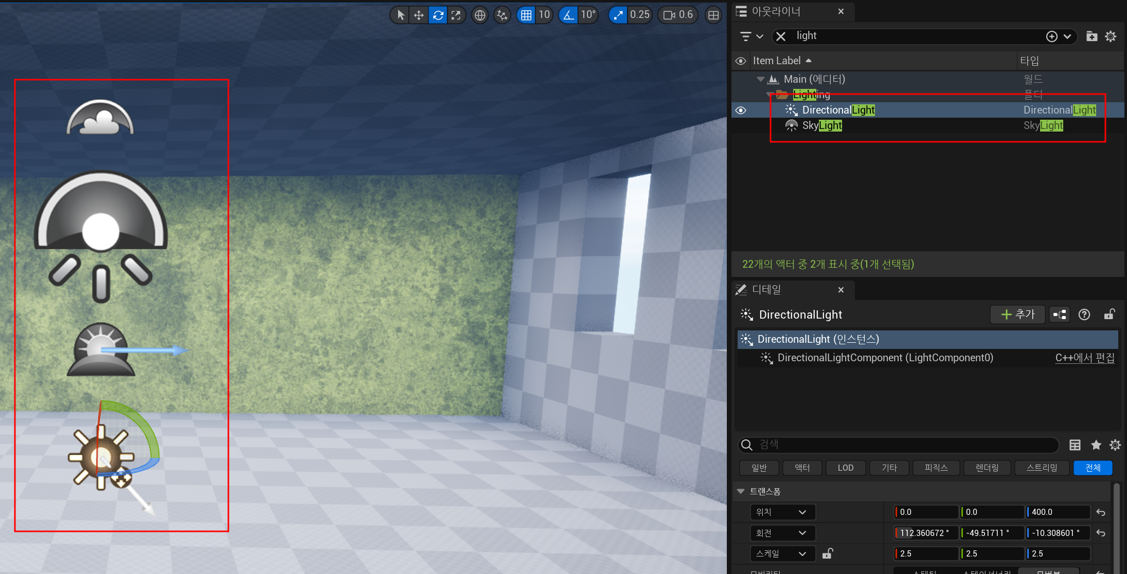 그리고 아웃라이너에 보면 Light가 2종류가 존재한다.
