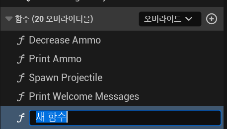 생성하고 나면 위와 같이 해당 함수를 이벤트 그래프로 드래그하여 생성할 수 있다.