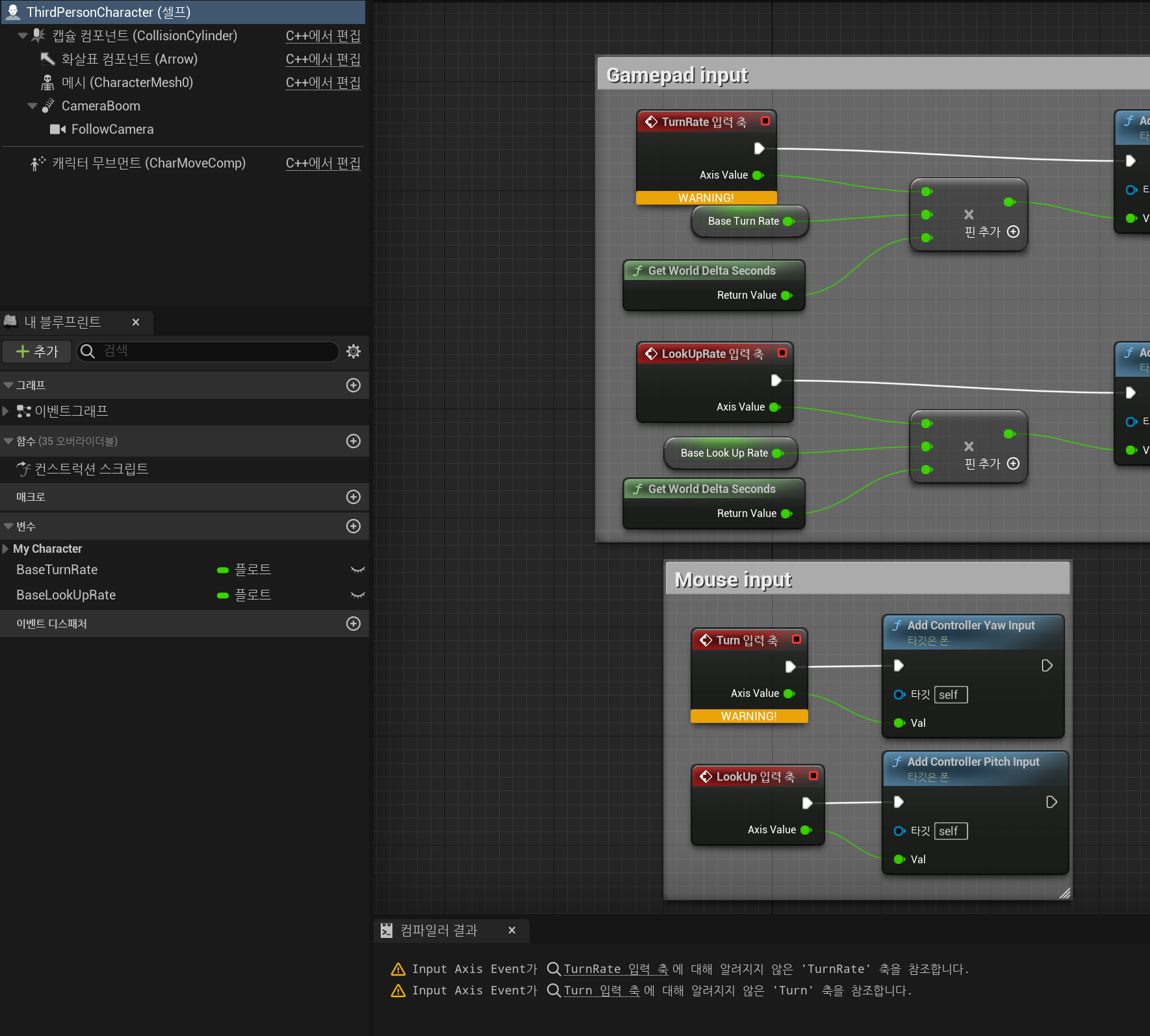 이는 캐릭터에 대한 입력이 기존 에셋인 스타터키트가 요구하거나 가정하는 것과 다르기 때문에 발생한다.