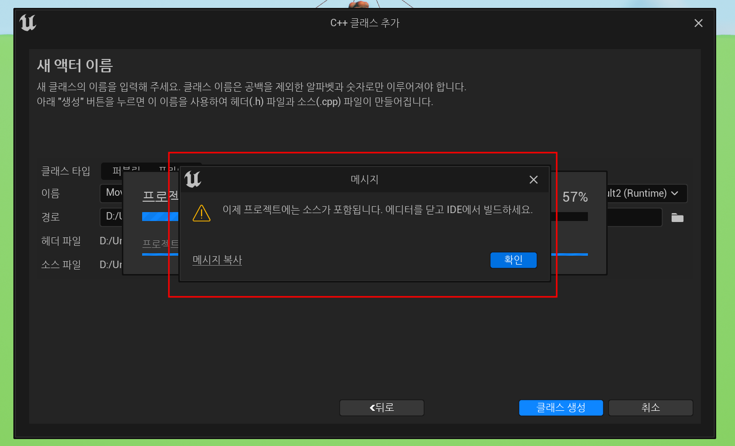 만약 실수로 아니오를 눌렀다면 아무런 현상이 나오지 않는데, 이때 만들었던 C++ 클래스를 어디가서 확인할 수 있는지 모를 수도 있다.