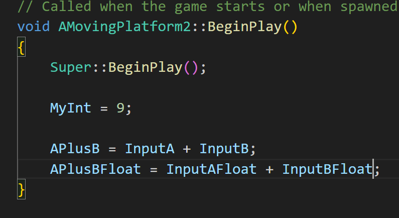 Vscode에서 cpp 파일을 보면 마찬가지로 BeginPlay 항목이 존재한다.