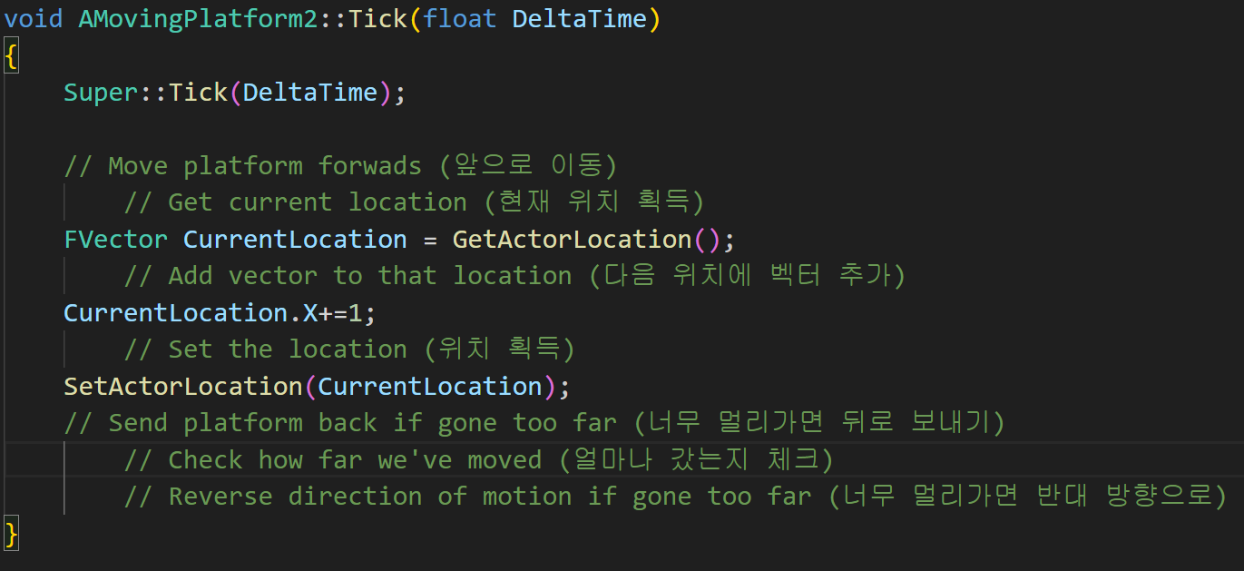 이제 컴파일해보고 실행해보면 앞으로 계속해서 이동하는 플랫폼을 볼 수 있다.