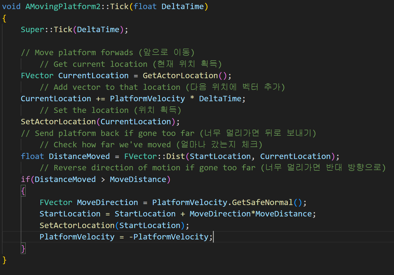 이를 StartLocation에 더하여 목표 위치를 만들고, 해당 값을 새롭게 StartLocation으로 설정해주면 된다.