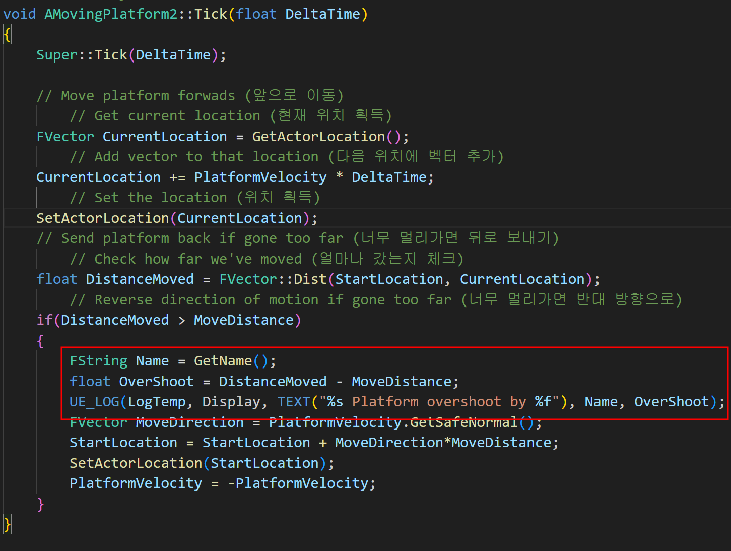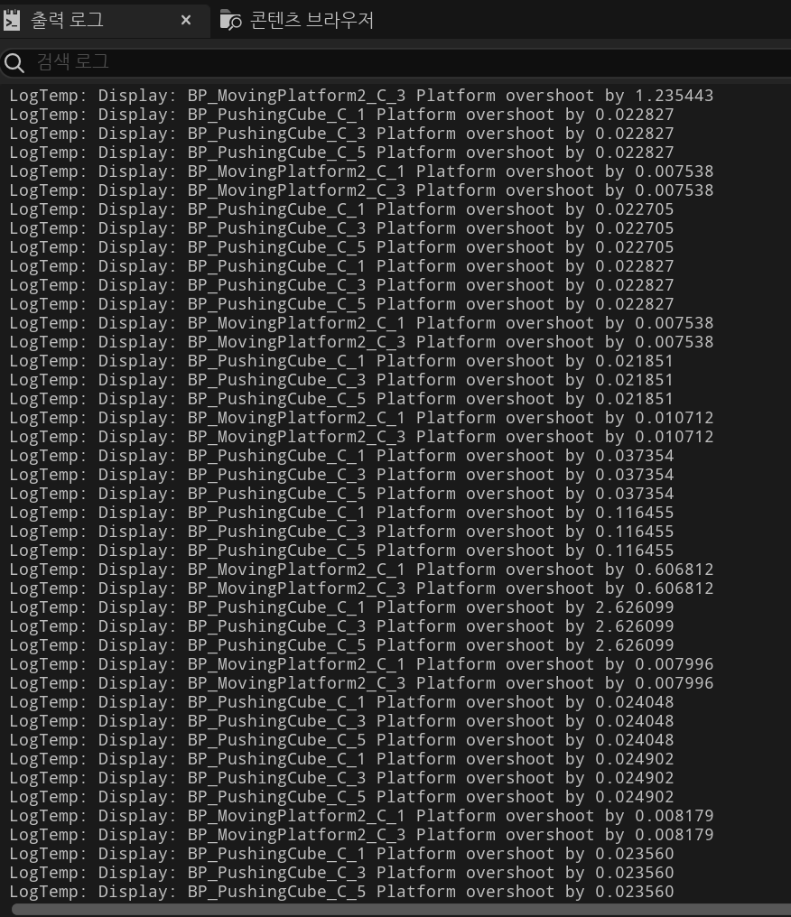 이제 오버슈트된 수치 앞에 해당 액터 이름을 같이 출력하여 디버깅 체크가 더욱 용이해졌다.