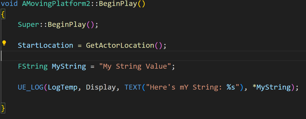 이는 언리얼의 UE_LOG에서 인수를 인자로 받아들이지 못해서 생긴 문제이며, 이에 변환 연산자 *이 필요하다.