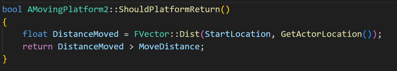 DistanceMoved를 함수로 만들어주면 ShouldPlatformReturn() 함수를 더 깔끔하게 만들어 줄 수 있다.
