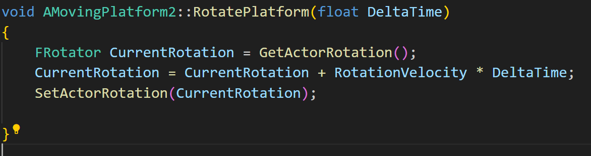 이번에는 회전하는 플랫폼을 추가해주기 위해 전에 틀만 만들었던 RotatePlatform 함수를 구현해준다.