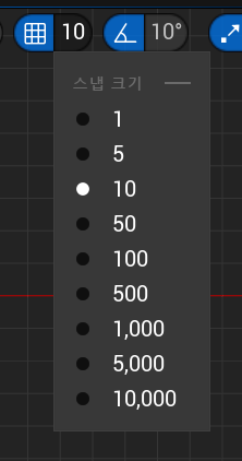 그리드 기능은 현재 에셋을 움직이는 단위를 조정할 수 있는 기능이다.