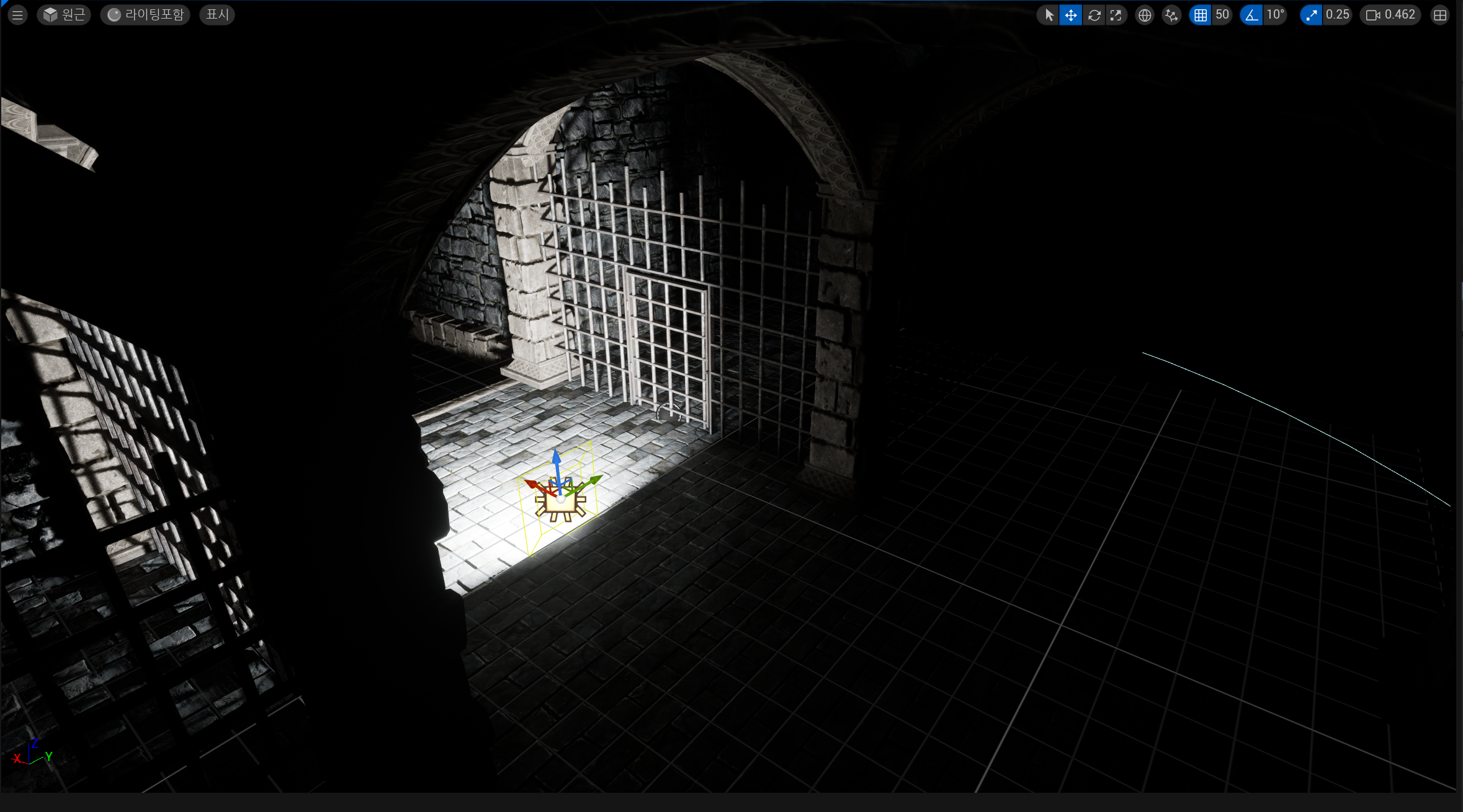 현재 작성한 레벨은 빛이 없어서 어두컴컴한 상태이다.