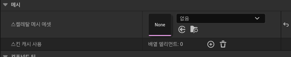 Mesh 1p를 눌러보면 팔인 것을 알 수 있으며, 해당 스켈레톤 메시 에셋을 없애주도록 한다.