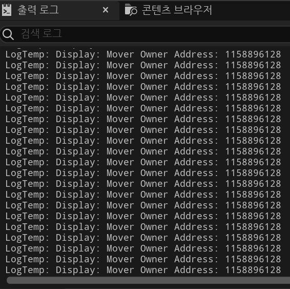 컴파일 후 플레이를 해보면, 같은 액터에 대해 매 플레이사마다 다른 주소를 가지는 것을 볼 수 있다.