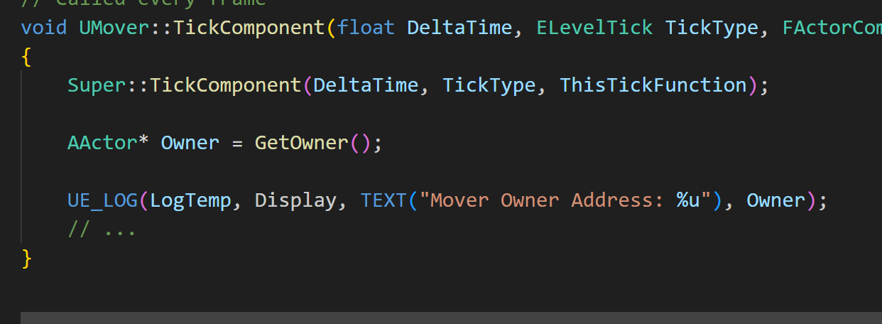 해당 함수를 통해 현재 컴포넌트 액터의 주소를 출력해보자.