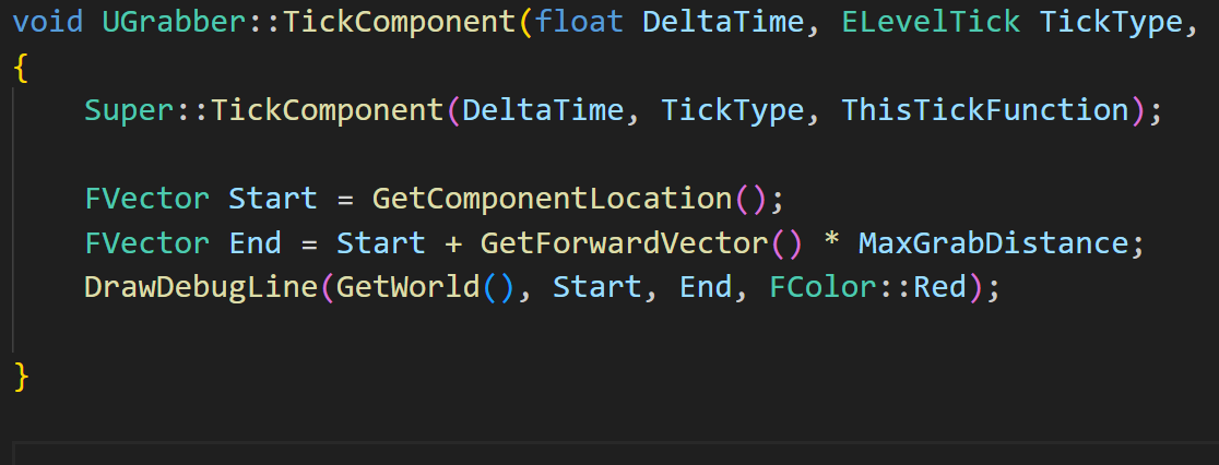이제 DrawDebugLine() 함수에 앞서 선언한 변수들을 차례차례 넣어주면 된다.
