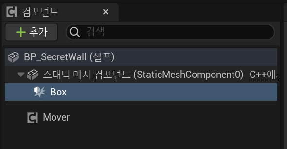 다음으로 비밀문에 박스 콜리전 컴포넌트를 생성해주자.