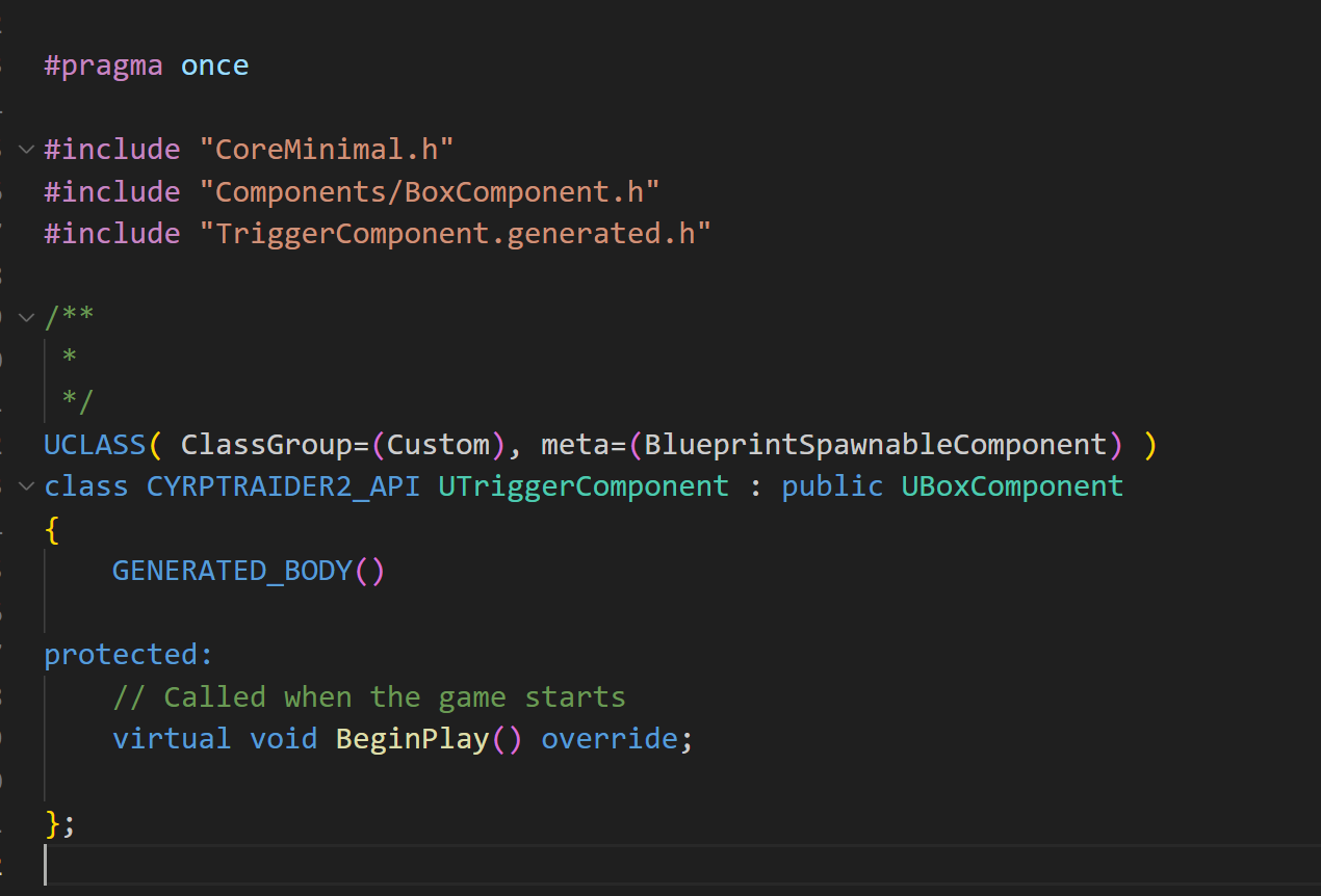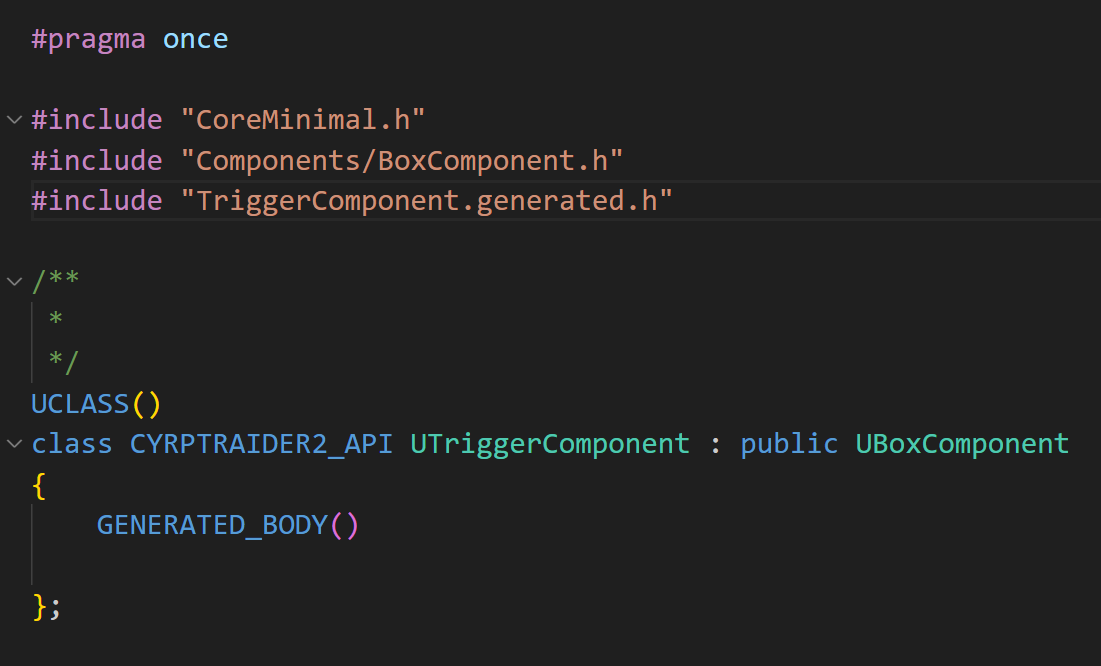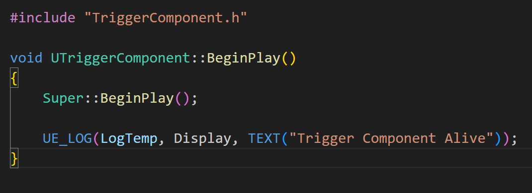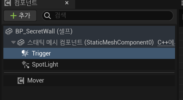 복사해주고 CPP 파일에는 로그 메시지를 통해 트리거 컴포넌트가 있다는 것을 알려주었다.