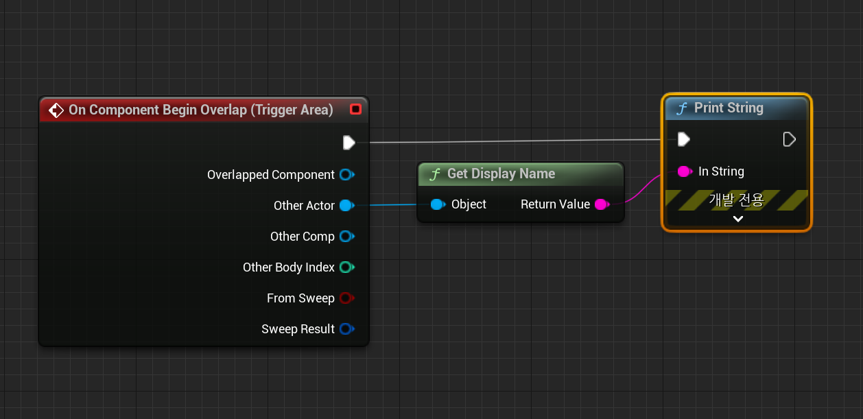 여기서 함수 오른쪽에 이름이 Trigger Area인 것은 기존 박스 콜리전 컴포넌트의 이름을 저렇게 변경했기 때문이다.
