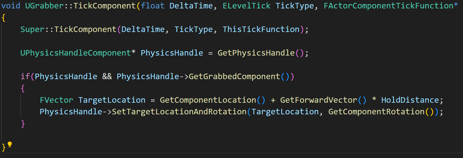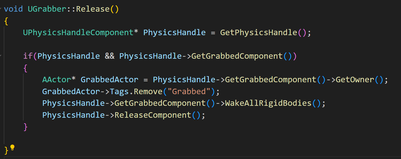 기존에 PhyscisHandle이 널인지 아닌지를 확인하고, 또 PhysicsHandle->GetGrabbedComponent()도 널인지 아닌지를 확인했었다.