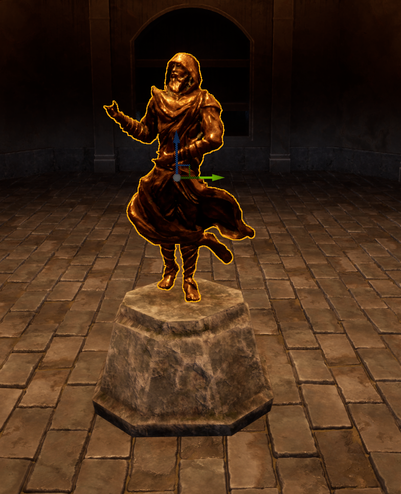 그리고 트리거 박스 구역을 조각상 위치에 잘 맞도록 조정해준다.