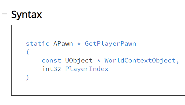 여기서 주의해야 할 것은 GetPlayerPawn이 APawn 타입을 반환하는 것이다.