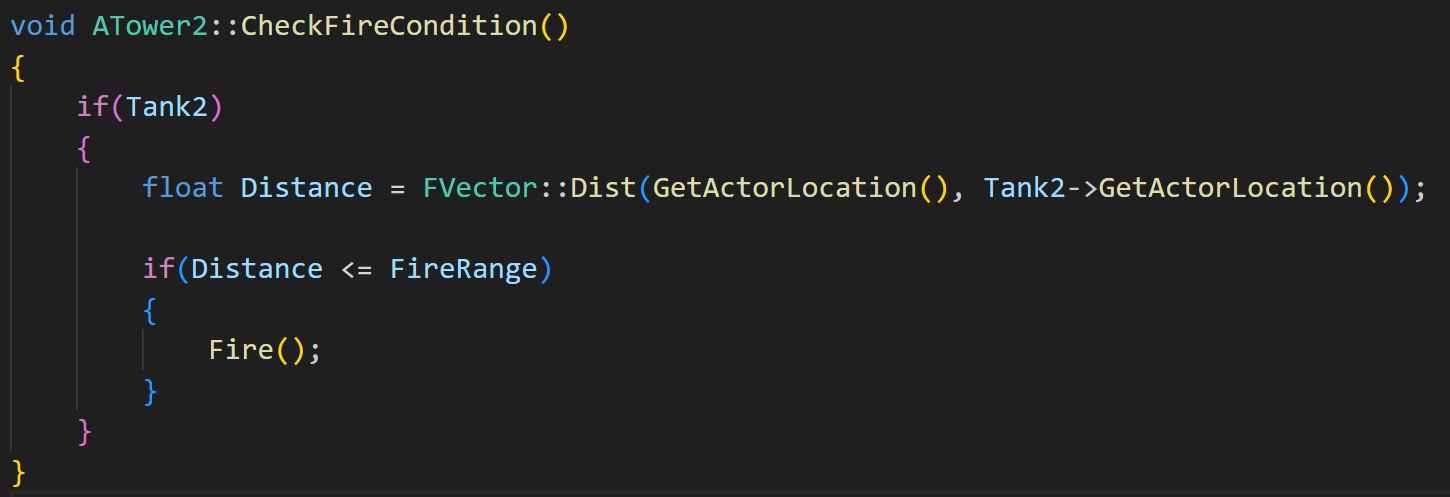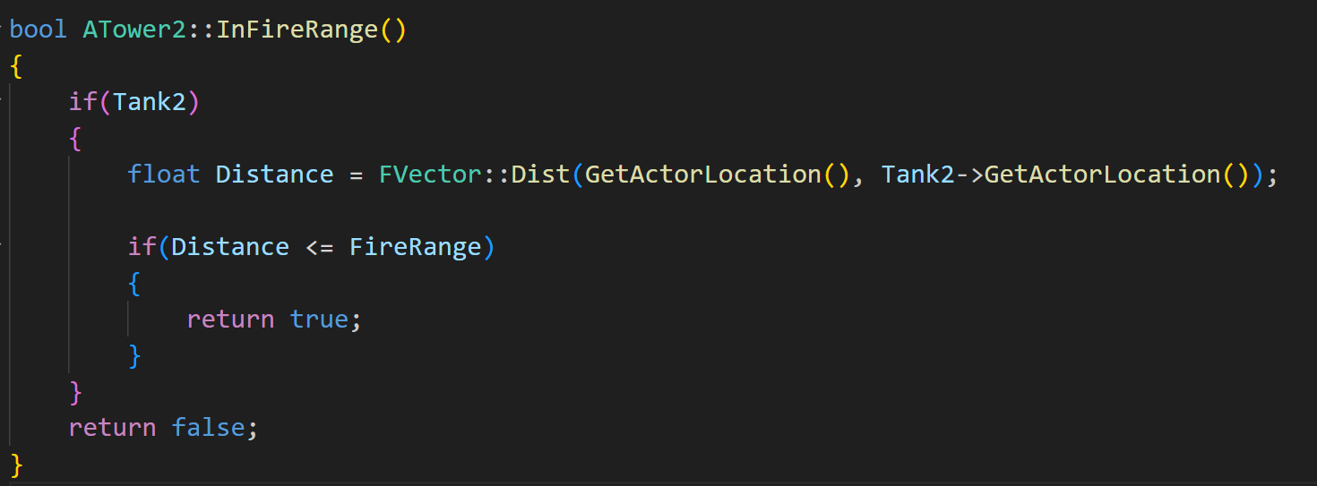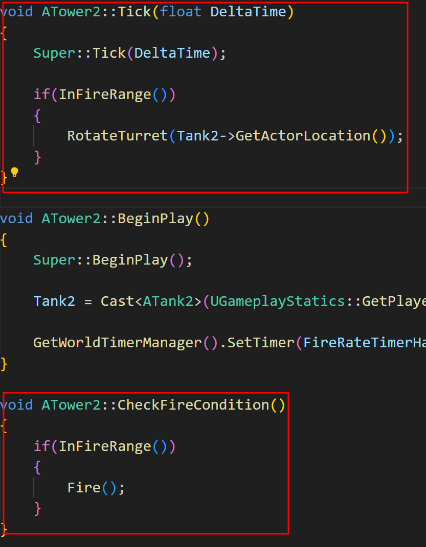 Tick 함수와 CheckFireCondition() 함수에서 동일하게 타워의 범위를 체크하는 내용이 있으므로, 이를 따로 함수로 만들어주었다.