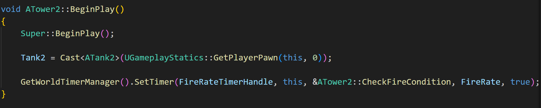 타워는 탱크를 보면 알아서 Fire를 해야하므로 타이머를 사용하도록 하였다.