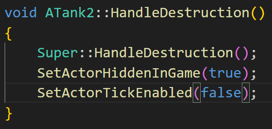 지금 죽은 액터가 만약 탱크라면 선언했던 Tank 변수를 통해서 아까 구현했던 HandleEstructuin() 함수를 호출한다.
