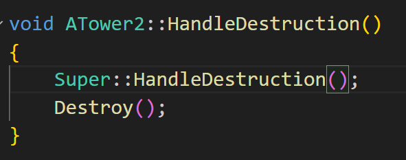 타워는 단순히 파괴만 하면 되므로 간단히 HandleDestruction 함수만 호출하면 된다.