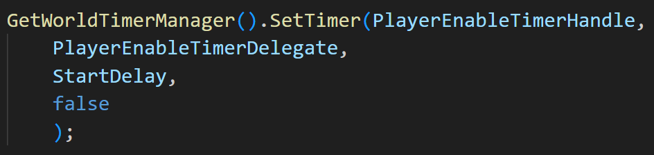 위 타이머 델리게이트를 기존 SetTimer의 콜백 함수 위치에 대신 사용하게 되는 것이다.
