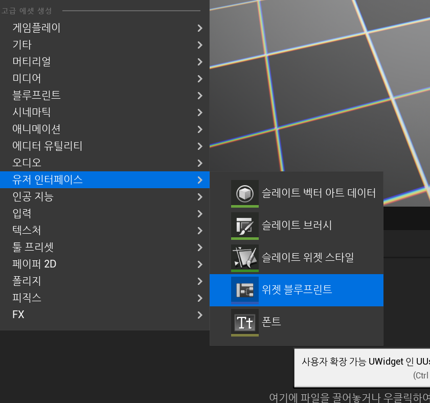 이제 해당 위젯을 블루프린트에서 가져와야 한다.