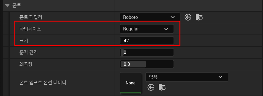 폰트 항목이 따로 디테일 탭에 존재한다.